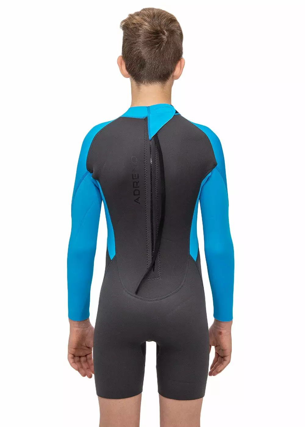The Adreno Youth Carve 3/2mm Long Sleeve Back Zip Spring Suit is the perfect suit for a wide variety of watersport activities. The long sleeve/short leg design allows the user to experience the freedom of a spring suit with the added sun protection of a long sleeve top. Constructed from high quality super stretch linings and super stretch neoprene. Each panel is stitched together using hard-wearing flatlock stitching. The arms and upper torso utilise 2mm super stretch neoprene to maintain flexibility for swimming and paddling while the lower torso and legs utilise 3mm neoprene to maximise warmth and durability.