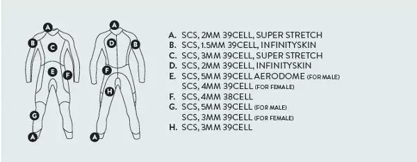 - Constructed from a mixture of 5, 4, 3, 2 and 1.5mm Yamamoto 39 Neoprene to give the maximum balance between buoyancy and flexibility.