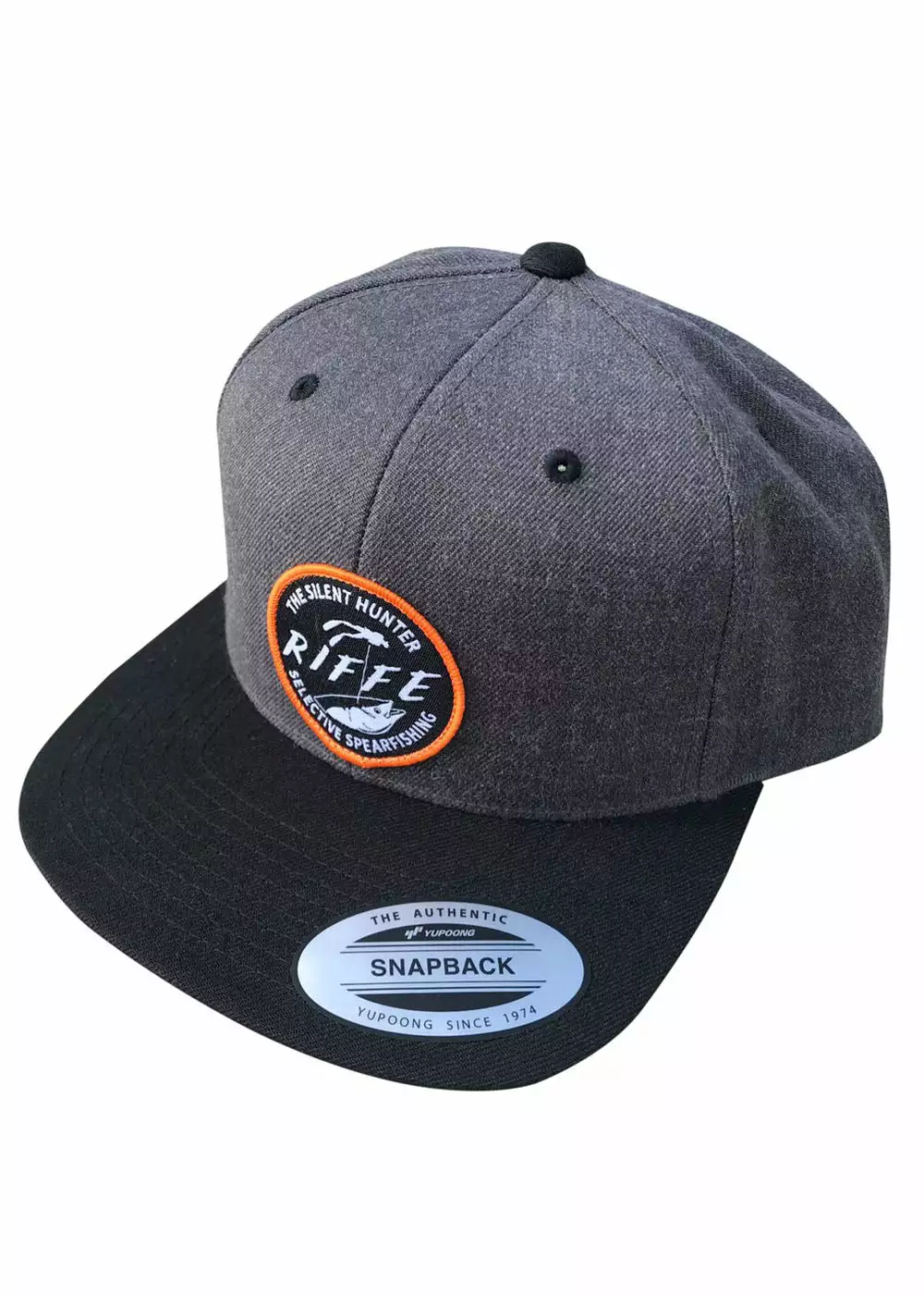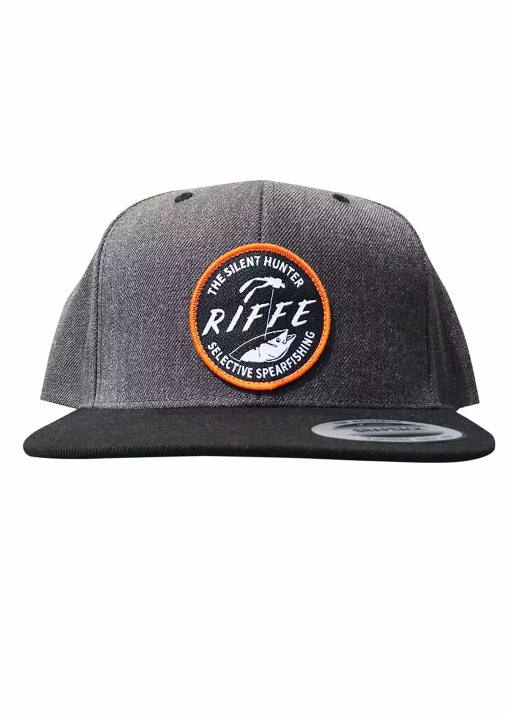 The Riffe Classic Snap Back is a one size fits all, charcoal hat with black visor & contrast charcoal under the brim