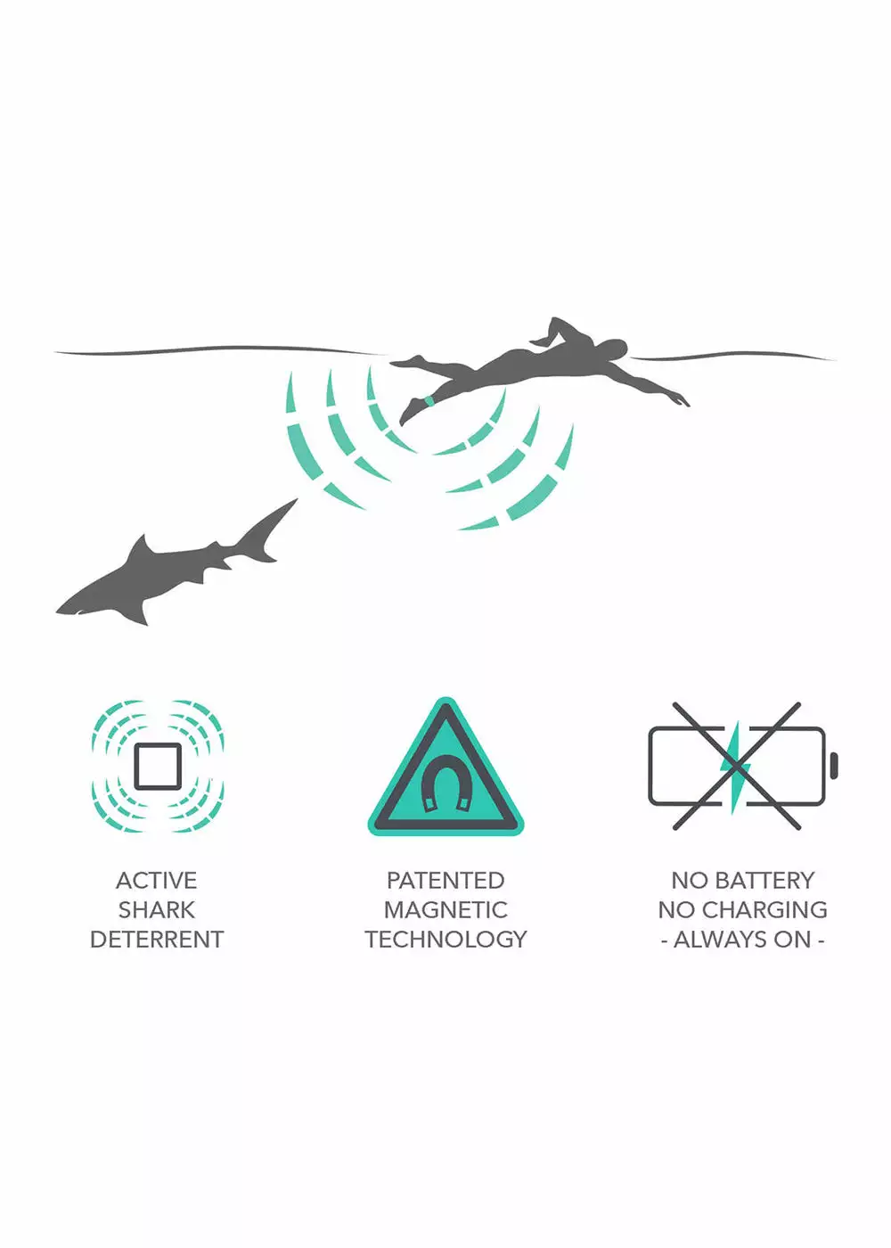Sharkbanz 2.0 Shark Deterrent Band is a device aimed at reducing risk when diving near predatory sharks thanks to strong magnets that don’t require charging. Sharkbanz do this by temporarily interfering with their magneto-reception mechanism that sharks (and other fishes of the Elasmobranch Sub-Class) use to navigate. Footage of these deterrents in the water shows their high level of efficacy, especially in dirty water and close proximity.