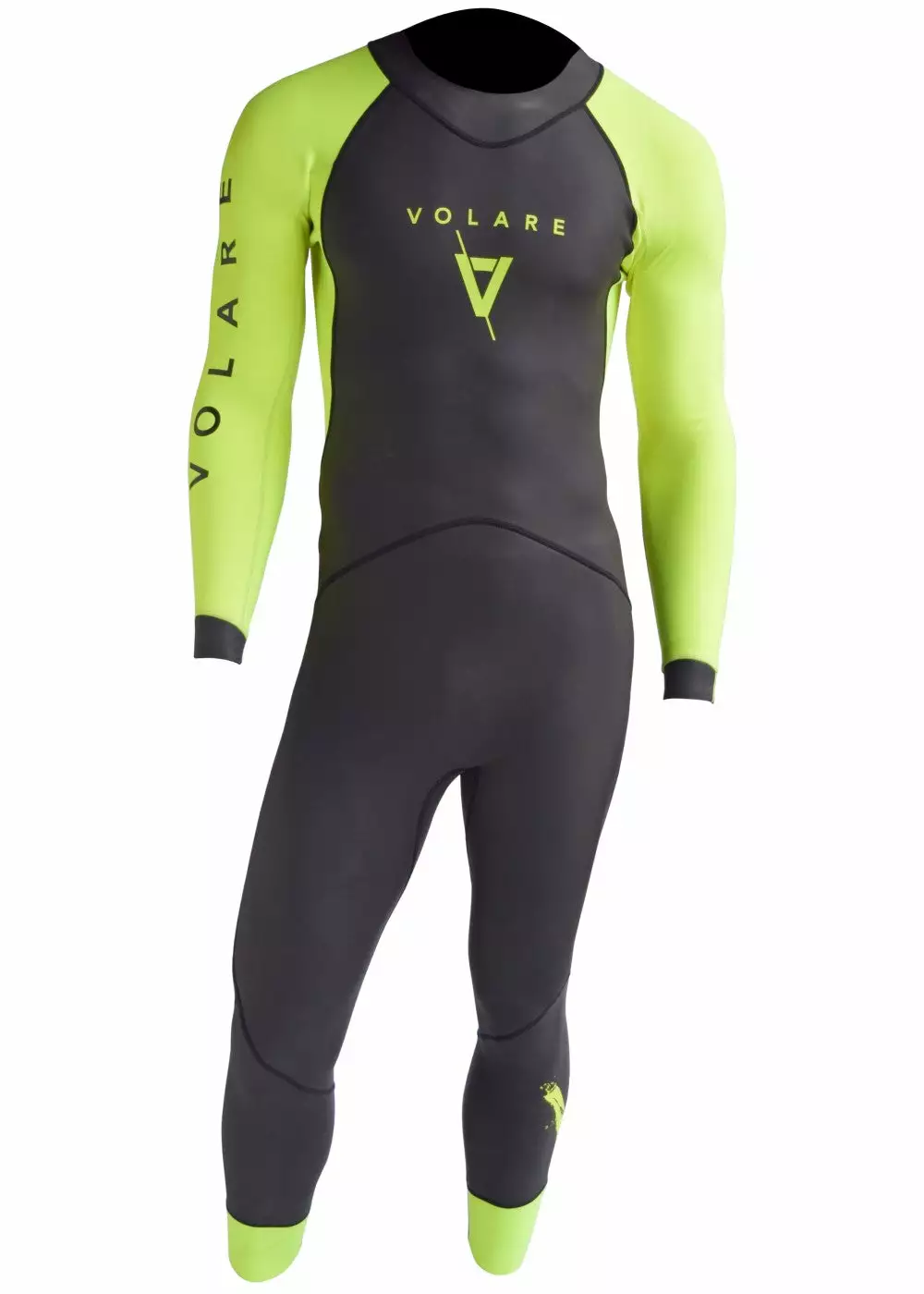 The Volare V1 wetsuit is designed specifically for swimming and triathlon. It’s neon yellow arm and leg panels make the suit highly visible in the water, making this suit ideal for open water swimming, triathlon and surf lifesaving. In a sea of black neoprene, you will be sure to stand out from the crowd.