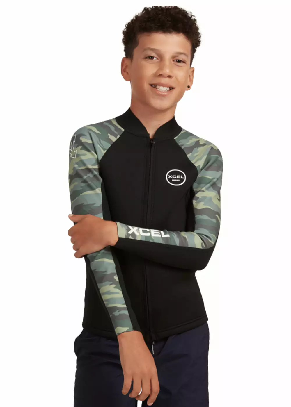 Xcel Youth Axis 2/1mm Long Sleeve Front Zip Wetsuit Jacket Features:
